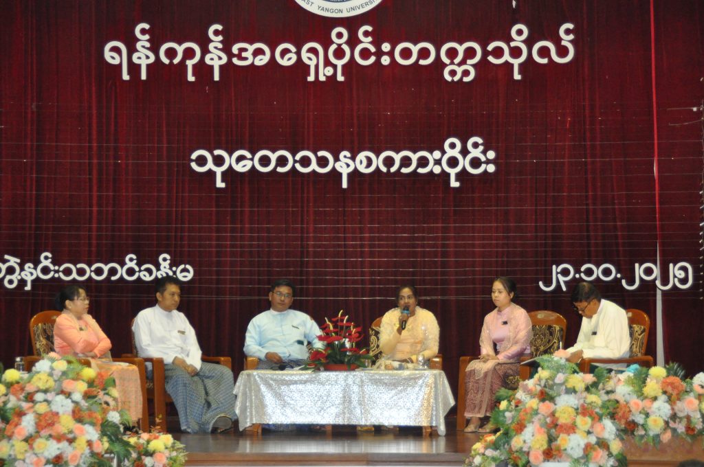 ရန်ကုန်အရှေ့ပိုင်းတက္ကသိုလ်၌ သုတေသနစကားဝိုင်း ဆွေးနွေးပွဲ အခမ်းအနားကို၂၃-၁၀-၂၀၂၅ ရက်နေ့တွင် ဤတက္ကသိုလ်၏ ဘွဲ့နှင်းသဘင်ခန်းမ၌ ကျင်းပခဲ့ပါသည်။ အဆိုပါ အခမ်းအနားသို့ ရန်ကုန်အရှေ့ပိုင်းတက္ကသိုလ်ရှိ ဘာသာရပ်ဌာန ၁၉ ခုမှ ဆရာ၊ ဆရာမများ၊ မဟာသိပ္ပံ၊ မဟာဝိဇ္ဇာနှင့် မဟာအရည်အချင်းစစ်သင်တန်းတက်ရောက်နေသူ ကျောင်းသား၊ ကျောင်းသူ စုစုပေါင်း ၃၀၀ ကျော် တက်ရောက်ခဲ့ကြပြီး ဘာသာစကား၊ လူမှုသိပ္ပံ၊ သဘာဝသိပ္ပံ၊ သက်ရှိ သိပ္ပံ ဘာသာရပ်များကိုယ်စားပြု ပါမောက္ခနှင့် တွဲဖက်ပါမောက္ခ ဆရာ၊ ဆရာမ ၆ ဦးမှ ဆွေးနွေးပြောကြားခဲ့ပြီး ဆရာ၊ ဆရာမများနှင့် ကျောင်းသား၊ ကျောင်းသူများက သုတေသနစကားဝိုင်း ဆွေးနွေးပွဲတွင် ပါဝင်ဆွေးနွေးခဲ့ကြပါသည်။