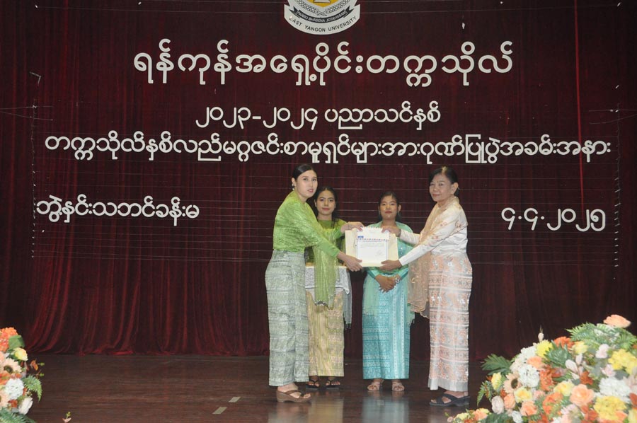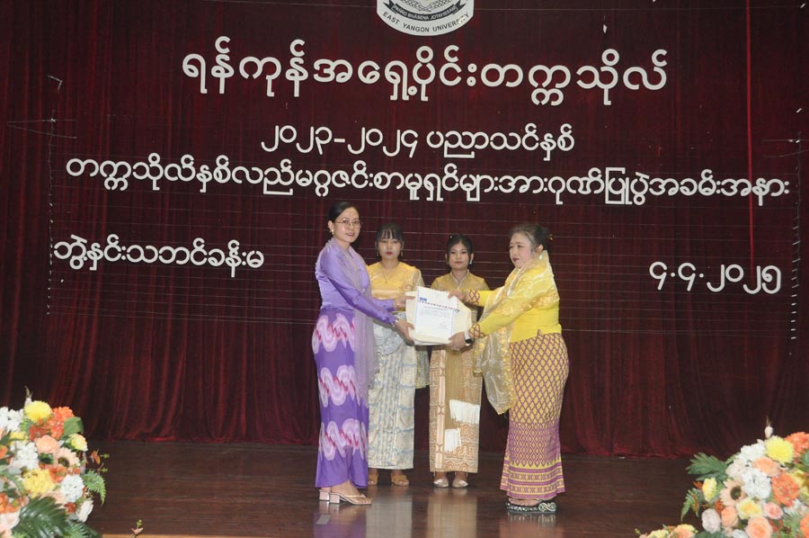 ရန်ကုန်အရှေ့ပိုင်းတက္ကသိုလ် ၂၀၂၃-၂၀၂၄ ပညာသင်နှစ်အတွင်း တက္ကသိုလ်နှစ်လည်မဂ္ဂဇင်းစာမူရှင်များအတွက် ဂုဏ်ပြုပွဲအခမ်းအနားကို ၄-၄-၂၀၂၅ တွင်ကျင်းပခဲ့ပါသည်။