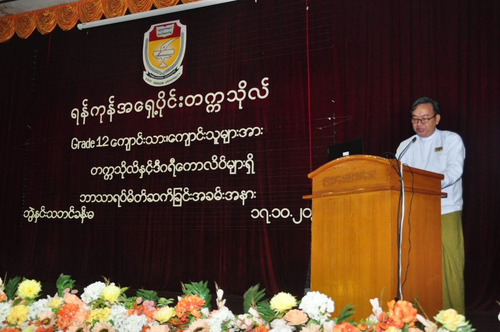 ရန်ကုန်အရှေ့ပိုင်းတက္ကသိုလ်တွင် သန်လျင်ခရိုင်အတွင်းရှိ အခြေခံပညာအထက်တန်း ကျောင်းများနှင့် ပုဂ္ဂလိက ကျောင်းများမှ Grade-12 ကျောင်းသား၊ ကျောင်းသူများကို တက္ကသိုလ်နှင့် ဒီဂရီကောလိပ်များတွင် သင်ကြားနေသော ဘာသာရပ်များအား မိတ်ဆက်ဟောပြောခြင်း အခမ်းအနား ကို (၁၇-၁၀-၂၀၂၅) ရက်နေ့တွင် ဤတက္ကသိုလ်၏ ဘွဲ့နှင်းသဘင်ခန်းမ၌ ကျင်းပခဲ့ပါသည်။ အဆိုပါ အခမ်းအနားသို့ Grade- 12 ကျောင်းသား၊ ကျောင်းသူ စုစုပေါင်း (၁၀၃၉)ဦး တက်ရောက်ခဲ့ကြပြီး ရန်ကုန်တက္ကသိုလ်၊ ရန်ကုန်နိုင်ငံခြားဘာသာတက္ကသိုလ်၊ ရန်ကုန်စီးပွားရေးတက္ကသိုလ်၊ ရန်ကုန် ပညာရေးတက္ကသိုလ်၊ ရန်ကုန်အရှေ့ပိုင်းတက္ကသိုလ်နှင့် အမျိုးသားစီမံခန့်ခွဲမှုဒီဂရီကောလိပ်မှ တာဝန်ရှိ သူများက မိမိတို့တက္ကသိုလ်တွင် သင်ကြားပို့ချလျက်ရှိသည့် အထူးပြု ဘာသာရပ်များနှင့် မိတ်ဆက် ဟောပြောခဲ့ပြီး ကျောင်းသား၊ ကျောင်းသူများမှ သိရှိလိုသည့်မေးမြန်းချက်များကို ပြန်လည်ရှင်းလင်း ပြောကြားပေးခဲ့ပါသည်။